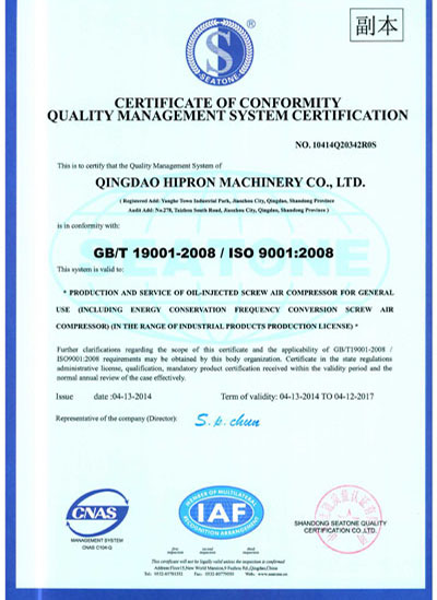 質(zhì)量認(rèn)證證書